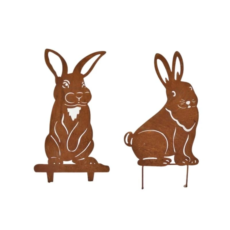 Silhouette très stable de deux lapins. En fer patinĂ©, il sera idĂ©al Ă planter dans votre jardin, un massif de fleurs ou dans votre pelouse.La campagne s’invite dans votre jardin avec ce set de deux silhouettes lapins en fer ! Ils aggrementeront vos jardins, vos terrasses, ou encore vos plus jolis parterres de fleurs !