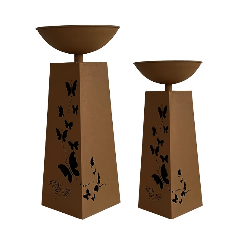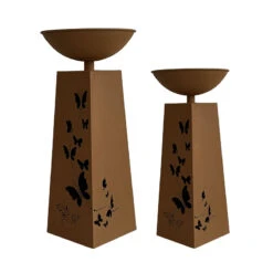 Superbe ensemble de deux vasques pour plantes, composé de fer avec sa charmante patine rouille. Le support est orné de jolis papillons sur toutes ses faces. Une déco originale et surtout atypique à apporter dans votre jardin mais aussi bien en intérieur !