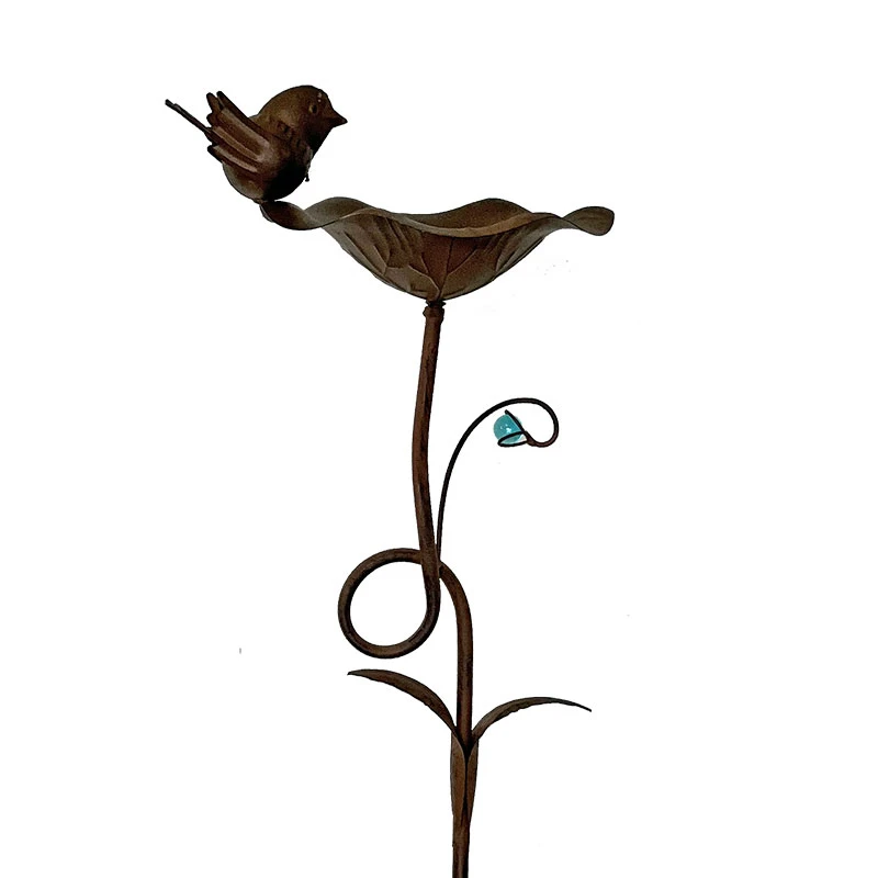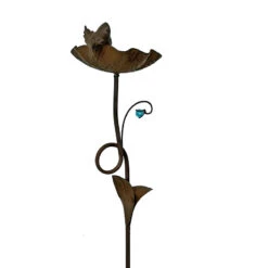 Bel ensemble de 3 tuteurs fer noir patinĂ© Ă la forme d’une feuille. ArborĂ©s d’une fleur le long de la tige, les oiseaux seront ravis de trouver dans cette petite coupelle en forme de feuille des graines ou de l’eau.