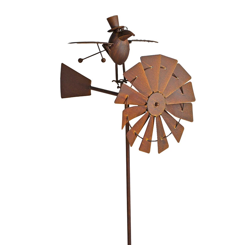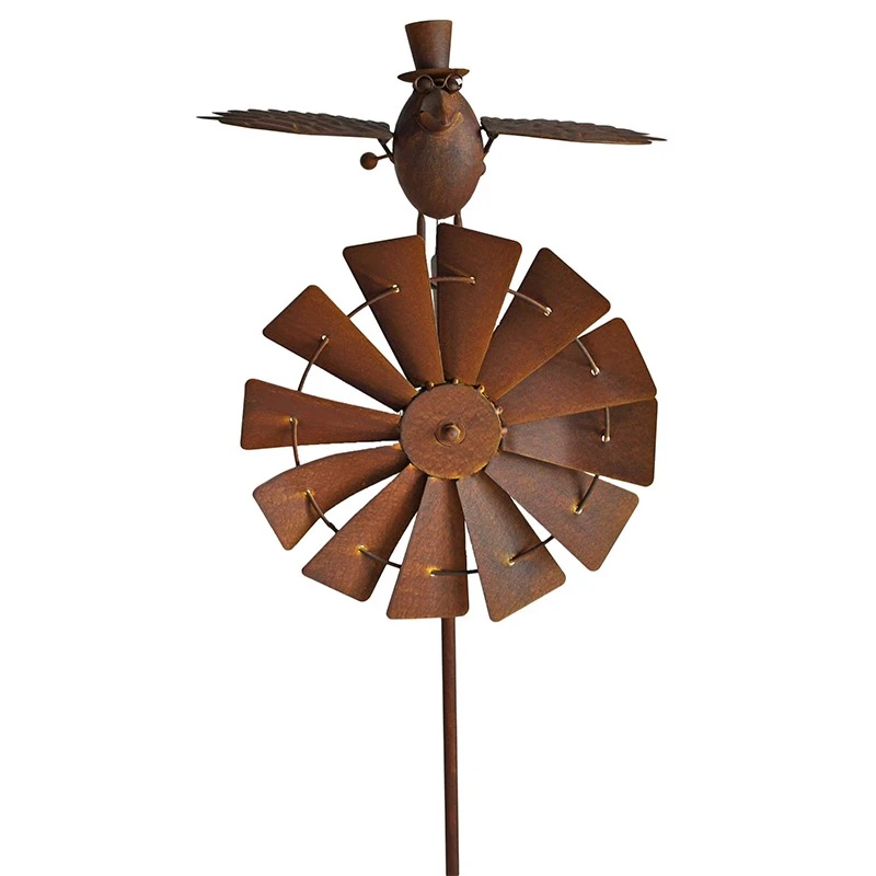 Rigolote girouette Ă©olienne. Cette jolie girouette Ă©olienne est dotĂ©e d’un mignon oiseau avec un chapeau et des lunettes. Cet accoutrement confère Ă la girouette Ă©olienne une dimension dĂ©calĂ©. Cette girouette Ă©olienne pour plantes apportera une animation Ă votre dĂ©coration de jardin. Notre girouette Ă©olienne est en fer. Les ailes de notre professeur oiseau bougeront en fonction du vent grâce Ă un système de balancier. La girouette Ă©olienne est Ă piquer. Elle tournera grâce au vent et crĂ©era une ambiance originale.
