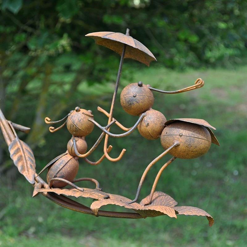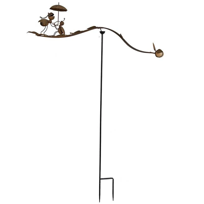 Superbe mobile de jardin sur tuteur. La famille fourmis repose sur une tige équilibrée par 2 poids a chaque extrémité. L’ensemble vivera avec le vent. Sa grande tige vous permettra de le placer à votre guise dans le jardin!