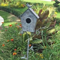 Nichoir Oiseaux Tuteur Patiné Gris16x12x137cm