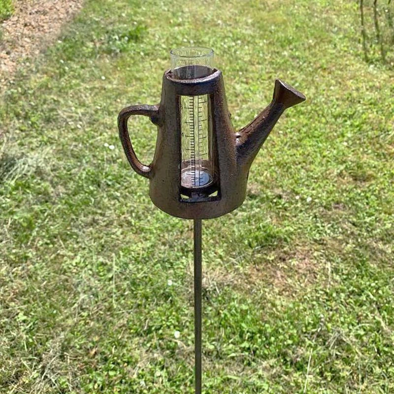 Joli pluviomètre original en forme d’arrosoir. Il vous permet d’agrĂ©menter vos jardins avec Ă©lĂ©gance ! Mais ne vous y trompez pas, ce pluviomètre est bien plus qu’une simple dĂ©coration. En effet, un pluviomètre a une rĂ©el utilitĂ©. PlacĂ© dans un endroit exposĂ© Ă la pluie, ce pluviomètre deviendra vite l’alliĂ© de tous jardiniers ! Il est graduĂ© jusqu’ Ă 8 cm, sa structure est en fonte et son rĂ©ceptacle est en verre. Un pluviomètre sert Ă avoir un contrĂ´le non sur le temps, mais sur ses consĂ©quences sur votre potager ou sur votre jardin. En effet, le pluviomètre recevra les prĂ©cipitations et vous indiquera la marche Ă suivre. Soit votre pluviomètre vous permettra d’identifier le dosage d’arrosage, beaucoup ou peu ; Soit votre pluviomètre vous alertera sur une possible sĂ©cheresse ou une humiditĂ© trop forte. Ces indicateurs sont très importants pour maintenir la bonne santĂ© de vos plantations.