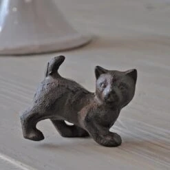 Avec son petit air curieux, ce petit chaton en fonte Ă poser sur une Ă©tagère ou le haut d’un meuble ne demande qu’a ĂŞtre adoptĂ©!