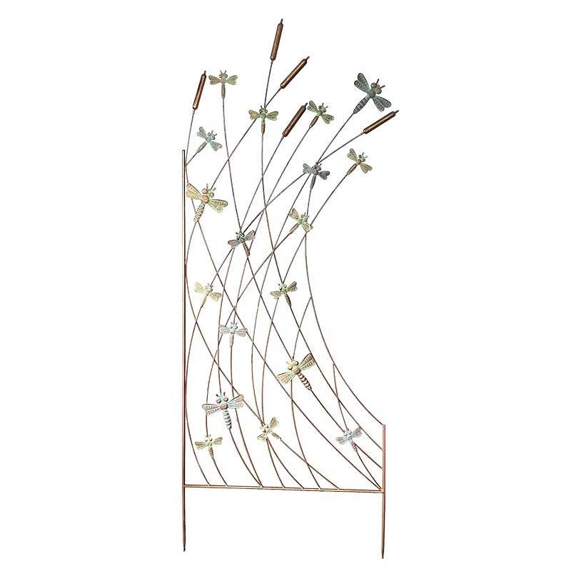 Ce treillage en acier et aux motifs de libellules donnera du style dans votre jardin.