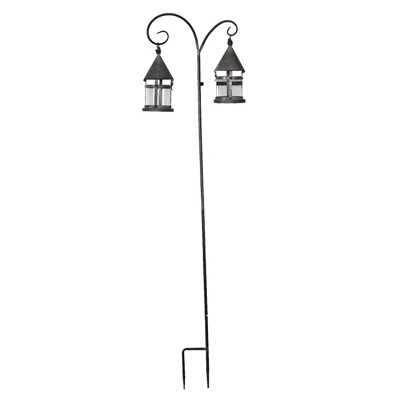 Profitez de votre jardin même la nuit grâce a ce magnifique tuteur double lanterne en fer, donner de la hauteur à vos plantes.