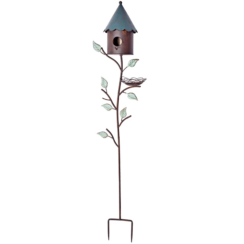 Un beau tuteur Ă planter dans votre jardin ! En fer couleur marron et vert il agrĂ©mentera de façon Ă©lĂ©gante votre jardin. Sa tige est ornĂ©e de feuilles afin que vos amis ailĂ©s puissent s’y poser et d’une coupelle pour y dĂ©poser des graines ou de l’eau !